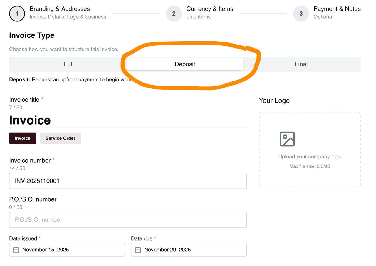 Overview of Deposit vs Final invoices and how to create them in InvoicesCraft.