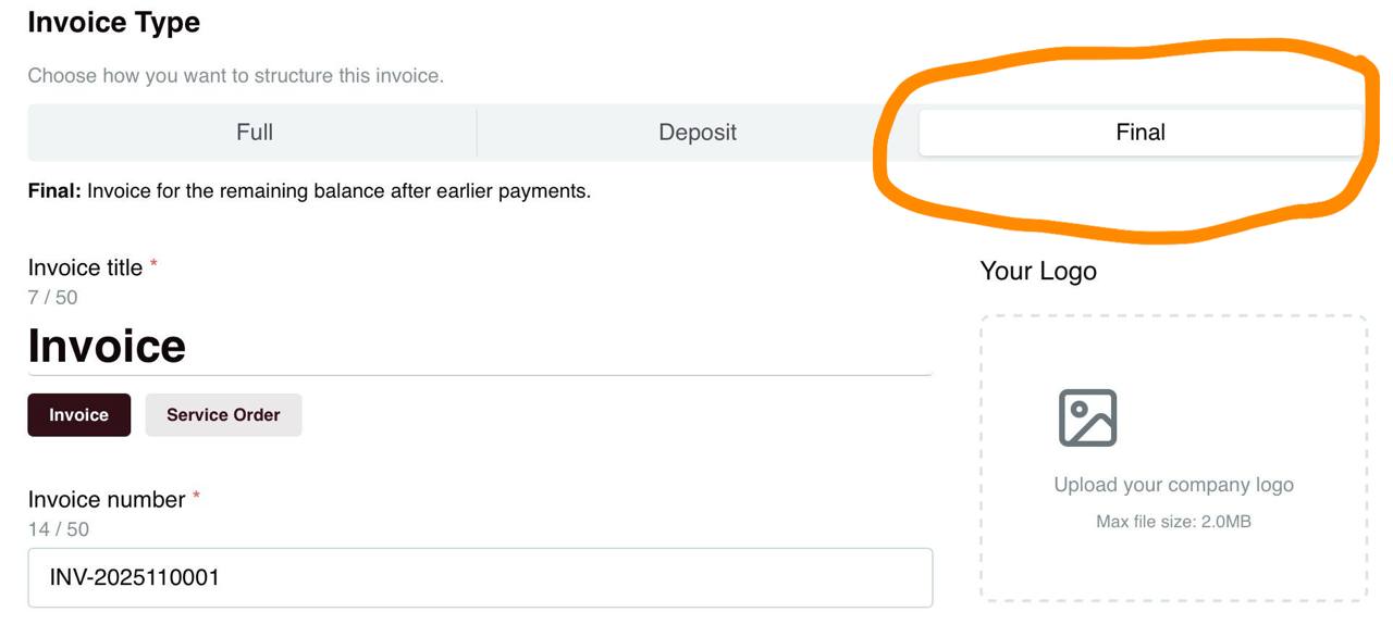 Overview of Deposit vs Final invoices and how to create them in InvoicesCraft.