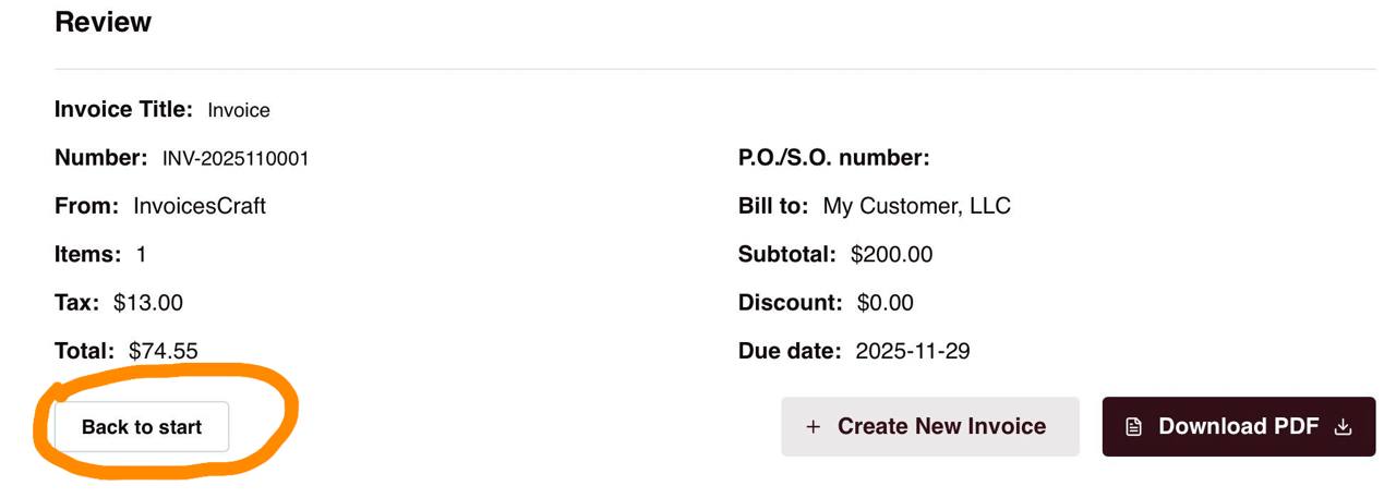 You only need to enter your project details once. When you're ready to create the Final invoice, everything is already there - just switch the type and adjust the number and dates. No need to re-enter line items or recalculate amounts manually.